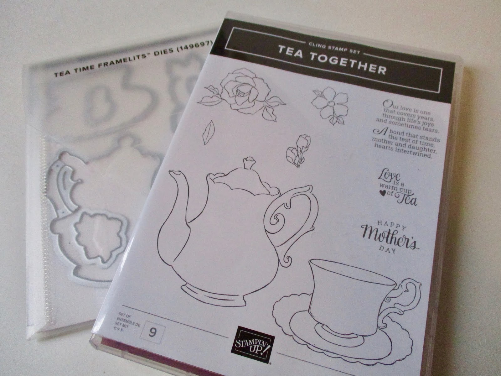 And last but certainly not least, my Stampin' Up demonstrator friend Kathy made my day when she gave me this new set of tea-themed stamps and dies that aren't even out yet (they come out this week, I believe). I went home and started using them immediately, and when I get some new ink pads, I'll be trying even more designs.