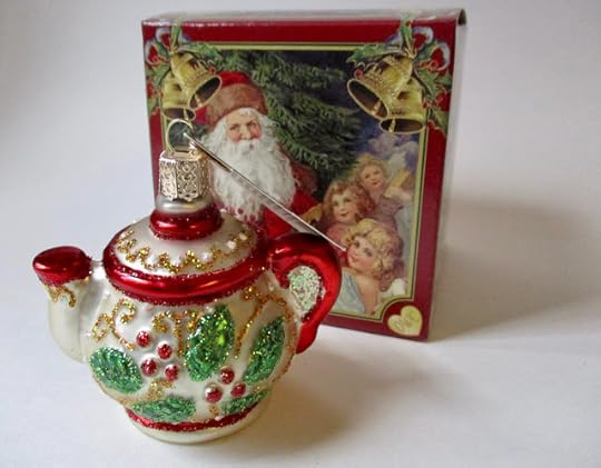 When a package arrived from my stepdaughter's family in Wisconsin a few days before Christmas, it included this Old World Christmas glass ornament. I did not have one like this, so … yay! (And I don't mind repeats of tea-themed ornaments, anyway.)