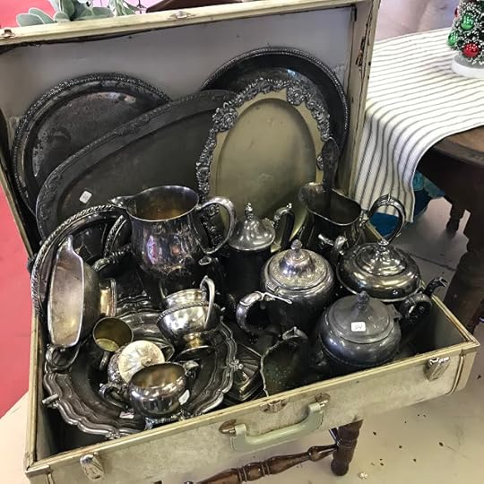 I didn’t buy any of the silver in this suitcase, but isn’t this a fun idea for a display?