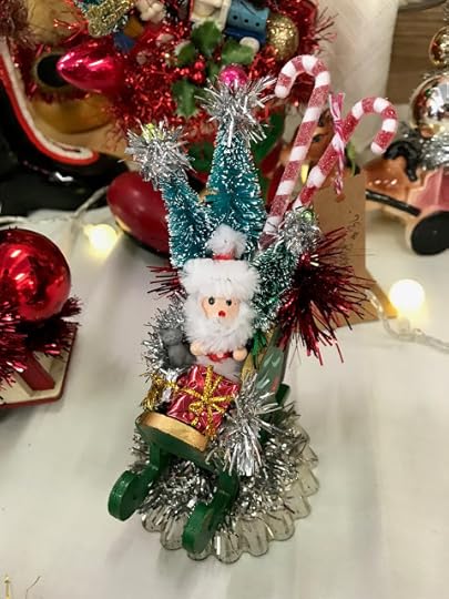 There was lots of clothes and jewelry, Christmas decor old and new, and a handful of booths that I would say were exclusively vintage. My favorite, far and away, was the booth by Soulshine Cottage, which makes vintage Christmas arrangements using vintage Christmas baubles, and I was in love! This little one was made with a vintage tart tin (like the ones I used here to make financiers).