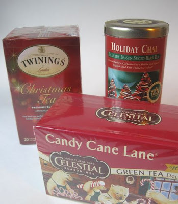 The other night, it dawned on me that for the first time since I became a true fan of tea, I no longer live within driving distance of a tea shop where I can go to sniff and taste new teas. Isn't that sad? There used to be a great tea shop just a few miles up the road in Peachtree City called Teafusions, but it closed. And there used to be Teavana shops all over metro Atlanta, but they're now closed. So it has occurred to me that until scratch-and-sniff technology makes it way to the internet, I'll be ordering by mail or finding my teas at the grocery store. In past years, I have enjoyed Christmas blends including the Candy Cane Lane Green Tea from Celestial Seasonings (a favorite), Christmas Tea from Twinings, and Holiday Chai from Republic of Tea.