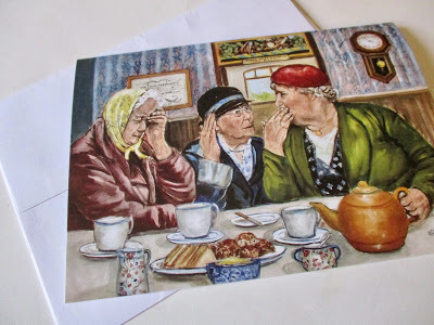 I was also quite charmed by the card she enclosed, which features artwork titled "Three Wise Monkeys Tea Room" by artist Will Millar. I can easily imagine that I am turning into at least one of these dear old ladies—possibly all three—and I am going to have to frame this card!
