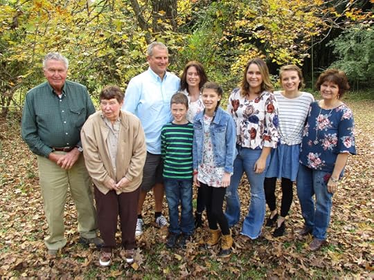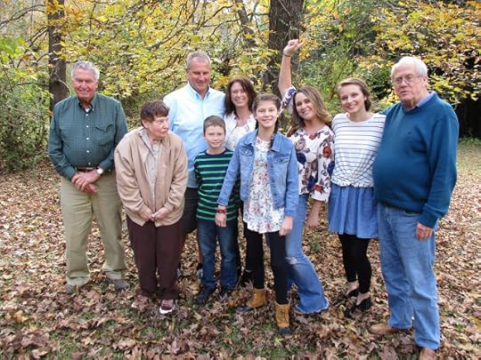 We were blessed with sunny skies and mild weather for our Thanksgiving celebration here in Newnan yesterday. From left, that's Daddy, Aunt Jane, brother-in-law Brad, nephew Matthew, sister Rhonda, nieces Amelia, Madison, and Cari, and me.