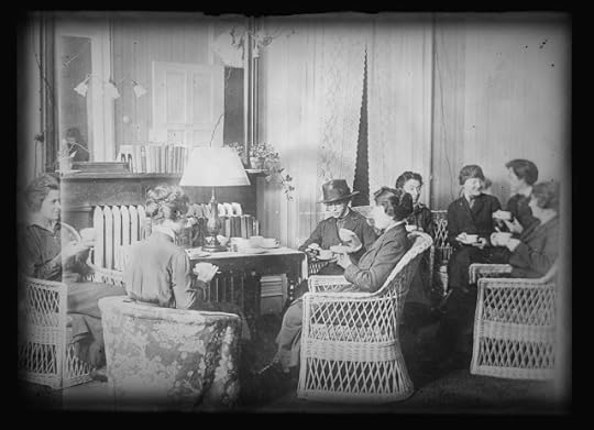 "Nurses home, 11th. Street, New York City. Afternoon tea." That's all the identifying information I found with this photo from the Library of Congress website. I love so much about this photo, from the wicker chairs to the radiator in the background and the hat on the woman at center.And this photo, a gift to the Library of Congress from the American National Red Cross, is from 1918, so I love the fact that we're looking at some of our kindred spirits from 100 years ago!