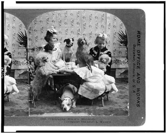I keep finding new-to-me tea-related images on the Library of Congress website, but this one (just half of a stereograph, interestingly enough) takes the cake! Copyright 1906, it's titled "Celebrating Rover's Recovery," and I'm not sure all those "Rovers" are having a good time at the tea party, but the little girls sure are.Hope you all have a great weekend!
