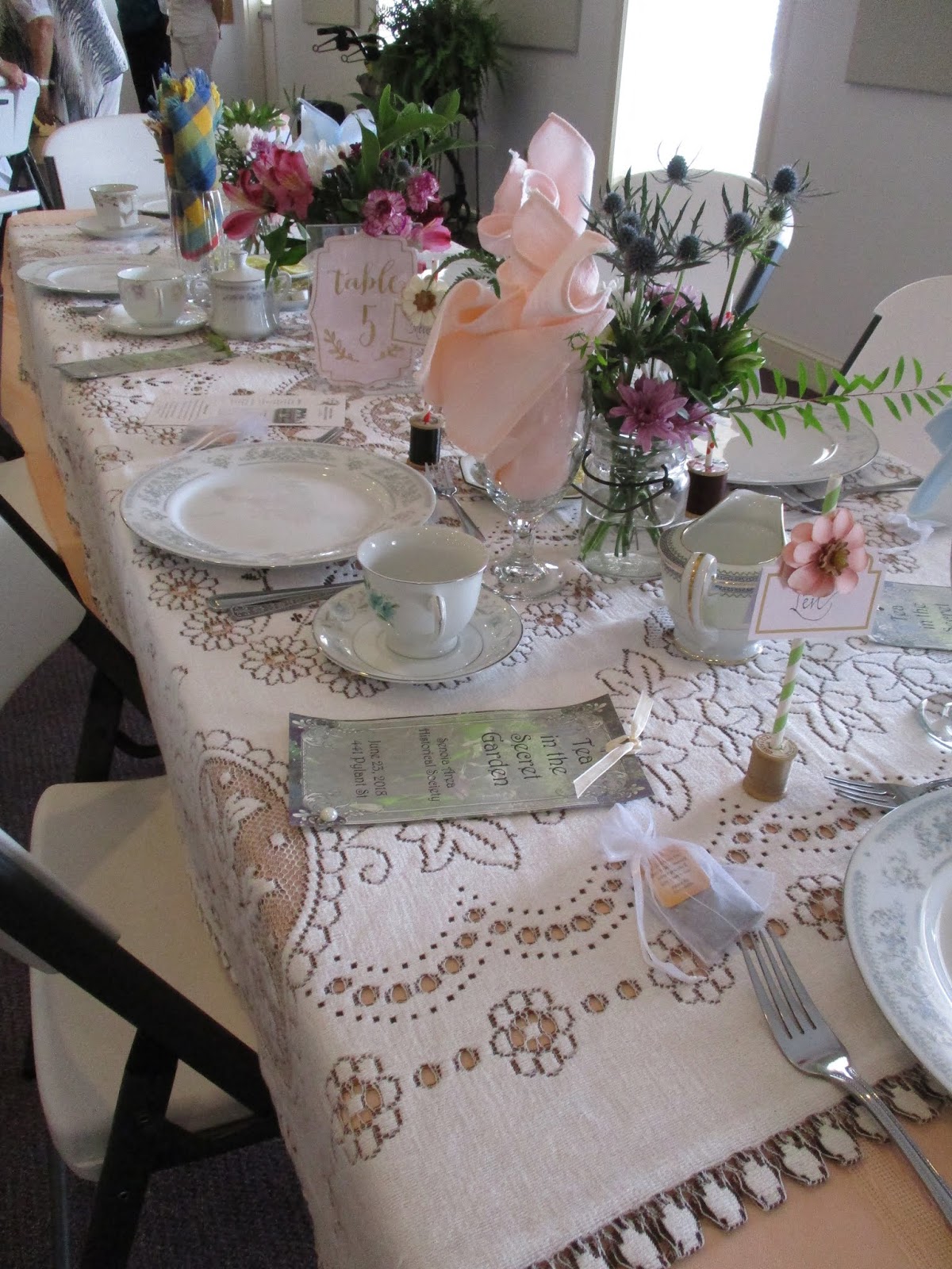 And while we didn't make it to the garden because of the rain, the garden made its way to us in the form of beautiful fresh flower displays on all the tables. I am always amazed at how much detail the Senoia volunteers put into their tea!