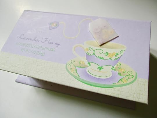 I found the cutest, most yummy-scented soap over the weekend and decided it would be great for the June giveaway! The Lavender & Honey soap itself has a delightful floral scent, but the packaging is what really caught my eye, something that surely any tea lover would enjoy!