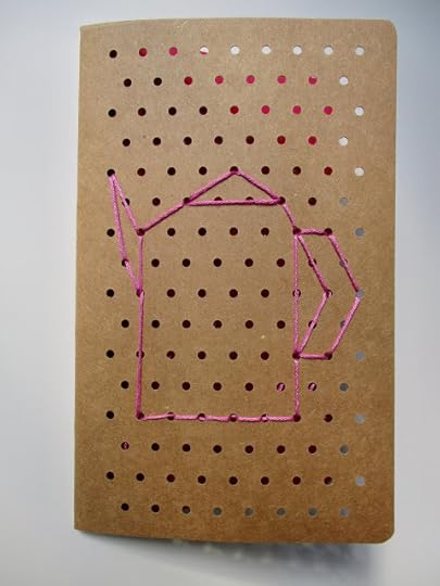The notebook comes with needle, embroidery thread, and an insert containing patterns for a few designs such as a cactus and a popsicle, but I opted to try something else and created my own design. But surely one of you can improve upon that, eh?