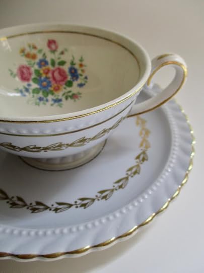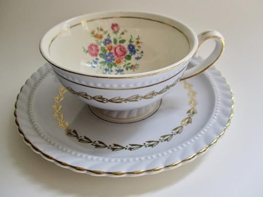 I was in a new antique store in Dallas over the weekend, the Dali and Davinci Marketplace, when I spotted a new teacup for my growing collection of blue models. This one was the prettiest soft shade of a blue that had a touch of periwinkle in it, and the scalloped edges, rosy interior, and $6.95 price tag (and to my surprise, 20 percent off that) made this one a winner. But you know what another of my favorite features is on this teacup?