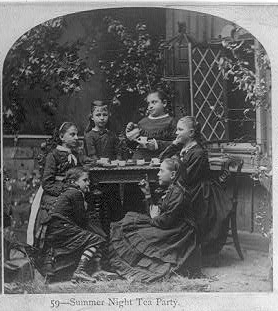 Now this is really random, but I found this photograph on the Library of Congress website and like it just because it's titled "Summer Night Tea Party." This is a detail of a shot from one of those old stereoscopic cards.