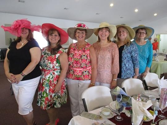 So this year's "Tea in the Garden" of the Senoia Area Historical Society got moved because of the storms that blew into town over the weekend, but those busy bees at the historical society had quickly transformed the local senior center into a tearoom, and it was so lovely! Right away, I ran into some old colleagues and took their photos in their hats. Aren't they cute? I was there to enjoy the tea and serve as a judge for the annual hat contest.