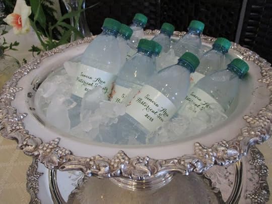 Now here's an idea I am going to use myself. They had bottled water in a silver punch bowl, and the labels had teacups on them! Aren't these great?
