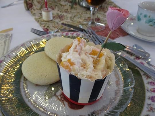 And dessert was Totsie's Tea Cakes and Rich's Frozen Fruit Salad (for those of you who have my department store tearoom book, this is the fruit salad in that book, and I loved their pretty presentation). Totsie's Tea Cakes, by the way, were soft and delicious, as were all the foods at this lovely, lovely tea!And I was talking too much and didn't think to get a photo of the hat contest winner, but I can assure you that you all would have approved. She was a lovely lady wearing a vintage white hat with her lacy ensemble, and the other two judges and I all spotted her immediately, which made our job extra easy this year!