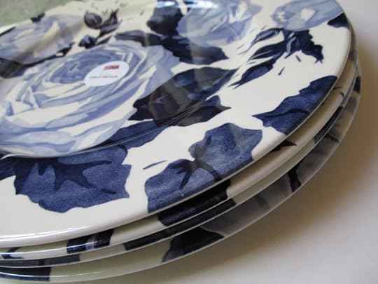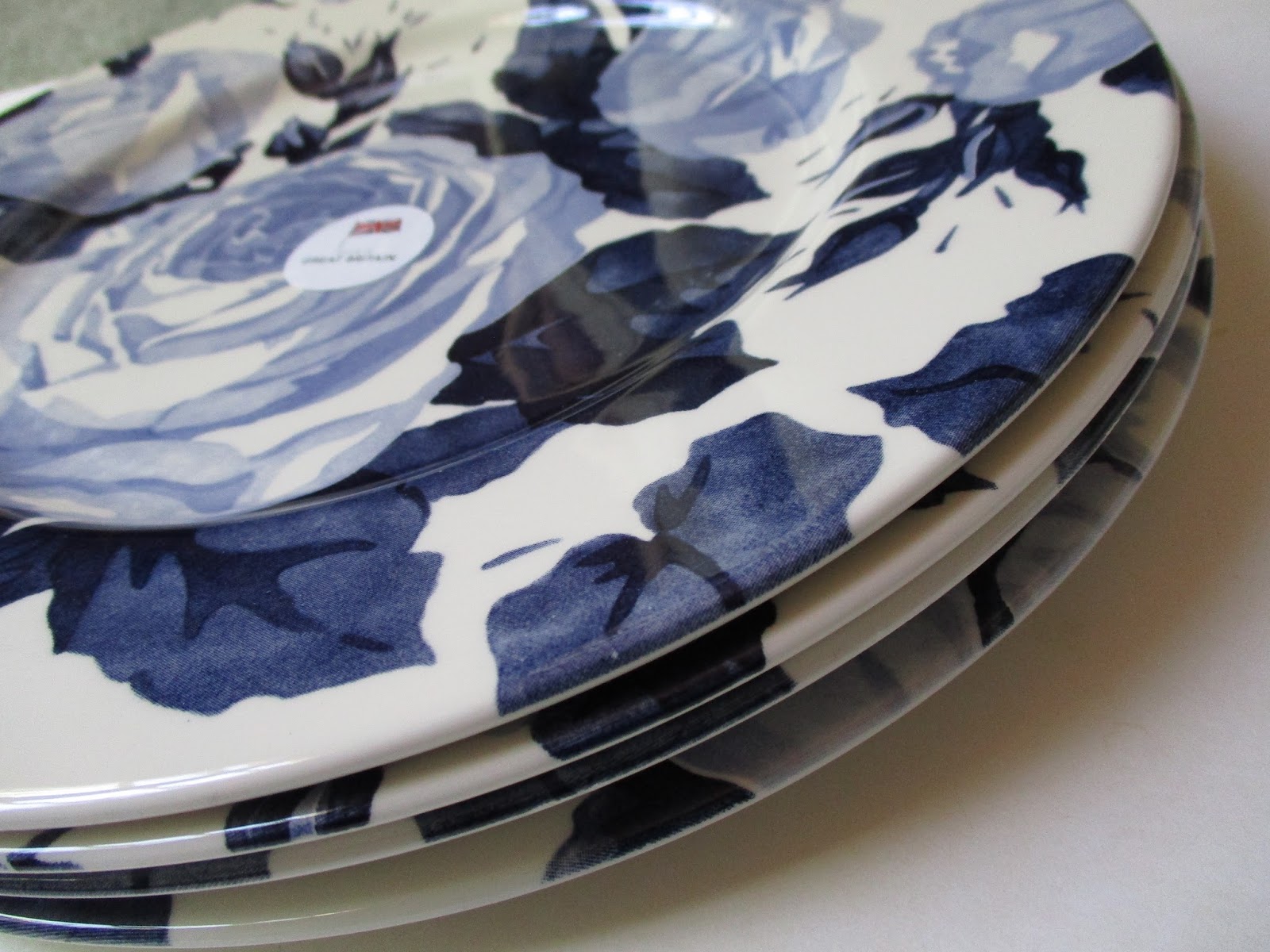 I was immediately smitten with these Royal Stafford plates, which say on the back that they're "Made in Burslem, the Heart of the Potteries, England." I'm thinking these may be used to serve a royal wedding breakfast on May 19! I read something not long ago that really influenced how I shop. It said something to the effect of not buying things you merely "like" but saving your pennies for things you "love," and I do "love" these plates because of both the soft denim-blue color palette and the lush roses!