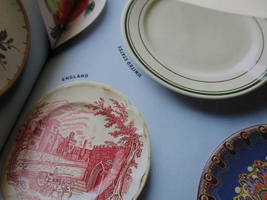 This pattern at top right from the United States. It looks like restaurant ware to me, and it's also rather plain, but then I realized I couldn't quite think of a single plate to represent the U.S. At first I thought of "Old Country Roses," since I've read that it is the most popular pattern here, but then I realized it's made in England. So … yeah, there's that. What about a Fiestaware plate? If you'd had to choose a single plate to represent the U.S., what would you have chosen?