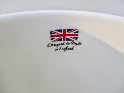 With so many tea wares made in China and merely decorated in England anymore, I was surprised to find this sticker inside the mug reading "Designed & Made in England."
