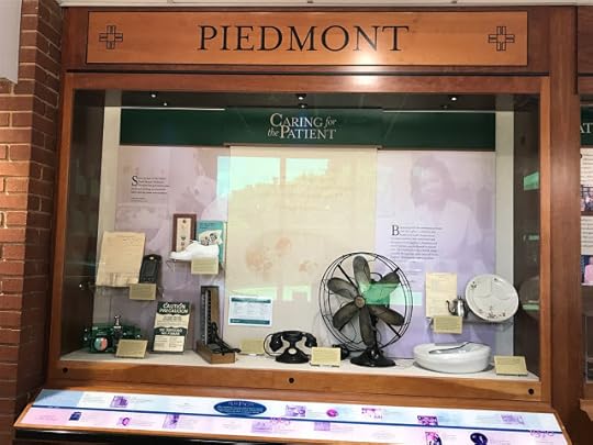 On Monday, I was at Piedmont Hospital in Atlanta where my husband had some (non-life-threatening) surgery on his leg. After he was in recovery, he asked if I would go find him some cheese crackers. As I was on my way to the gift shop, I noticed many vintage items attractively displayed in cases along a hallway, and all the vignettes had some connection to Piedmont Hospital history. I was speeding by this case when something made me hit the brakes.