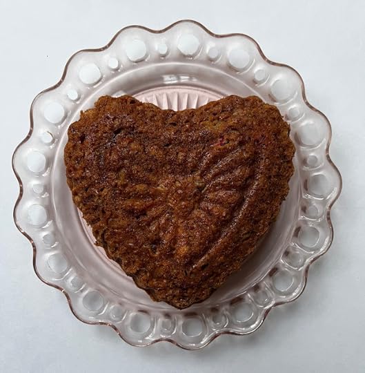 And the answer is yes, yes you can. I didn't overfill it, using three small heart-shaped pans to make mini tea breads with the excess batter, but I think it worked out well. The design would be more pronounced with a batter that didn't have so much stuff in it (this is my Christmas cranberry bread because I had leftover cranberries in the freezer), but I'm still impressed with the amount of the scalloped design you can see. So, have you ever used one of these molds to make a cake? Would you?