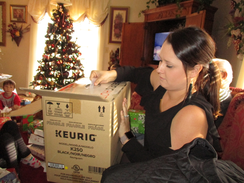 And Madison, the oldest, who now has her first "grown-up" job, has moved into a townhome with a girlfriend and had requested a coffeemaker.And we're still eating leftovers from yet another wonderful family meal! My sister and I join in for what we like to think of as a modified Thanksgiving menu. This year that meant a ham Daddy baked as well as dressing, sweet potato casserole, potato salad, broccoli casserole, green bean casserole, cranberry sauce, olives, and rolls. Dessert was a coconut cake, pound cake, chocolate chip pie, and pecan pie. All was accompanied by lots of sweet tea! I hope you had a wonderful Christmas and enjoyed a happy, healthy family celebration yourself. How did you celebrate?