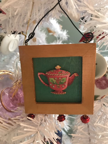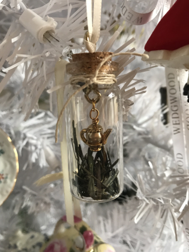 One of my newest additions is this handmade ornament from my tea blogger friend Lynn, the only ornament I've ever seen that actually contains real tea! Isn't this clever? By the way, click on her name to visit her blog and get some great ideas for last-minute tea gifts. She's got some very creative ideas!And below, I'll close with some other teapot and teacup ornaments that were gifts from friends in this lovely world of tea. Hope you all are getting ready to have a wonderful Christmas celebration with family, friends, and all those you love. Are you doing anything special this weekend? The thing I'm most looking forward to is the candlelight service at church on Christmas Eve. However you plan to celebrate, Merry Christmas, from my home to yours!