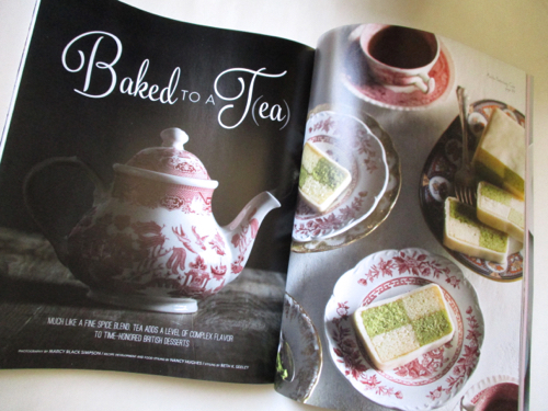And oh, do I love this magazine! It's one of those pricey ($12.99) ones from Hoffman Media, but this one is definitely worth every penny. The issue is guest edited by Edd Kimber, who won the first season of The Great British Bake Off. I so enjoyed reading about him, and the magazine also takes us to places like the Pump Street Bakery in a Suffolk village and a cooking school in rural Lancashire. But my absolute favorite feature was "Baked to a Tea," and I'm just drooling over some of these tea-infused recipes, from this incredible Battenberg cake baked with matcha to a tart made with Assam tea to a Lady Grey Tea Jelly.