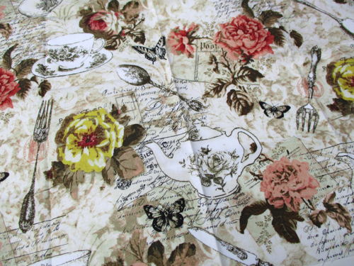 This one's great too, isn't it? The fabric arrived only the other day and I haven't even planned what to use it for yet, but I am learning that if I see a tea-themed fabric, I'd better get it now, because by the time I *finally* decide on a pattern, the fabric will no longer be available. Despite my slow-as-molasses approach to selecting a design, I have been sewing, but I've been using fabric that is so absolutely unlike me, I can't even explain why I love it so.