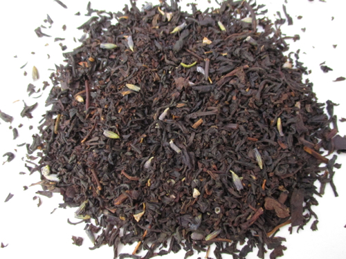 As you can see from the loose tea, this tea has lavender buds blended in, along with bergamot and "hints of vanilla." If you like Earl Grey with a twist, this is definitely a great tea to try.