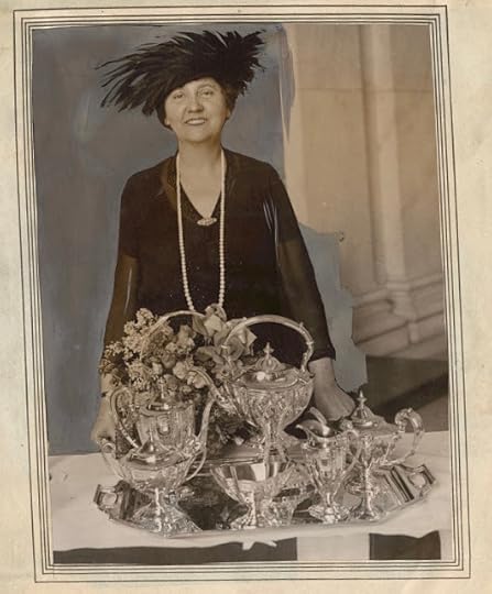 You just never know what you'll come across when perusing the photos on the Library of Congress website. I thought this one was wonderful, and it shows "Lois Kimsey Marshall, wife of Vice President Thomas R. Marshall, standing next to a silver tea service."