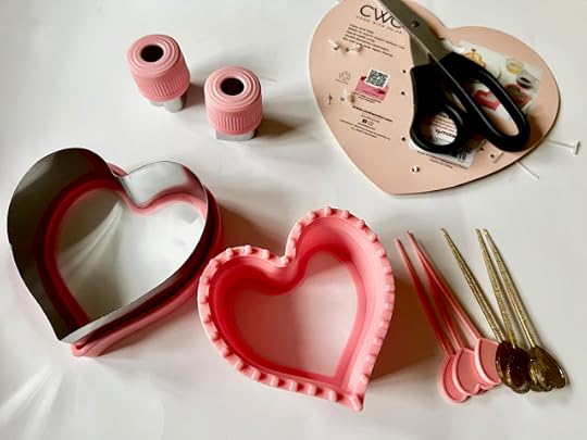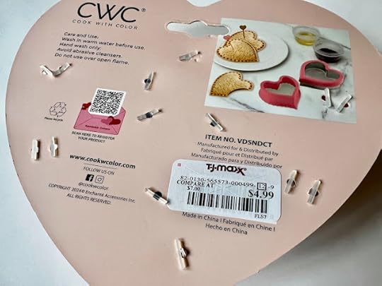Once you manage to set everything free, you end up with all this: a heart-shaped sandwich cutter and a heart-shaped sealer, two small pink pieces with tiny heart-shaped cutters on the end (for making hand pies, I later learned through some online research), and six heart-shaped picks.