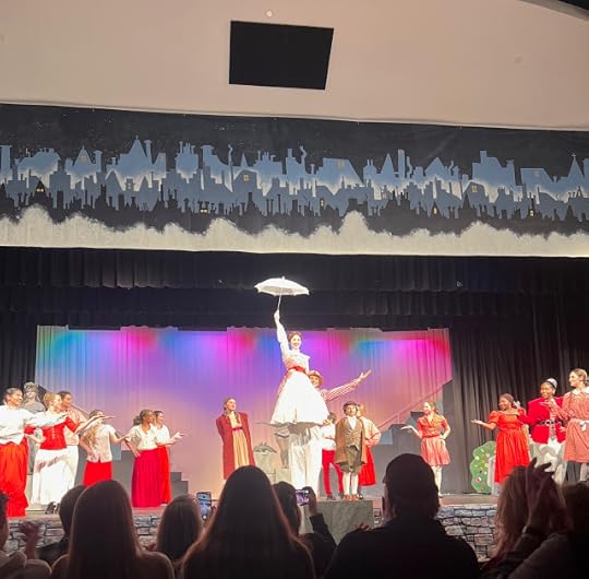 It's been a busy weekend, but the highlight was undoubtedly traveling up to Buford on Saturday to see my granddaughter, Bella, perform the lead role in her school's production of "Mary Poppins," and I was ridiculously proud of her! She has a beautiful voice, and while I may be the teeniest bit biased, I thought her performance was outstanding. You won't be surprised to hear that I had asked her mom to alert me when the teatime scenes were coming up, like this one where Mary Poppins pulls a teapot out of her bag!