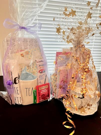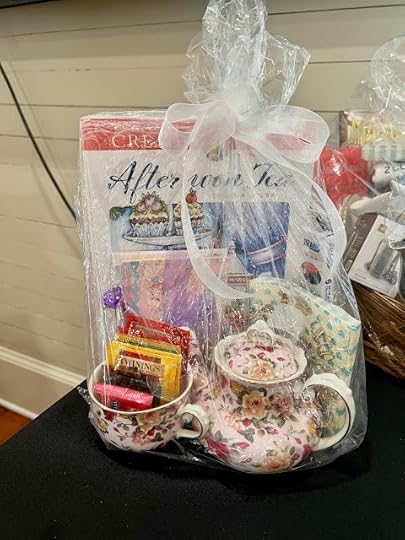 The group raises money for women's scholarships, among other things, and they sold tickets for a raffle for some amazing teatime baskets like these two.