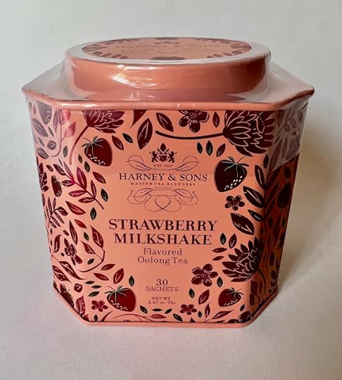 The other day, the line was awfully long at my Barnes & Noble, so I decided to go check out in the café area. And on the way to the café, I spotted a new Harney & Sons tea in a pretty pink tin, this Strawberry Milkshake Tea.