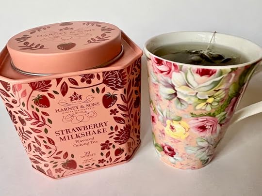 And I'm happy to report this is "Strawberry Milkshake for Grown-ups" tea! The oolong flavor is what I detected most, then the strawberry, and not much "milk." It was quite an unexpected pairing of flavors, and I'm a fan! Have any of you tried this one?