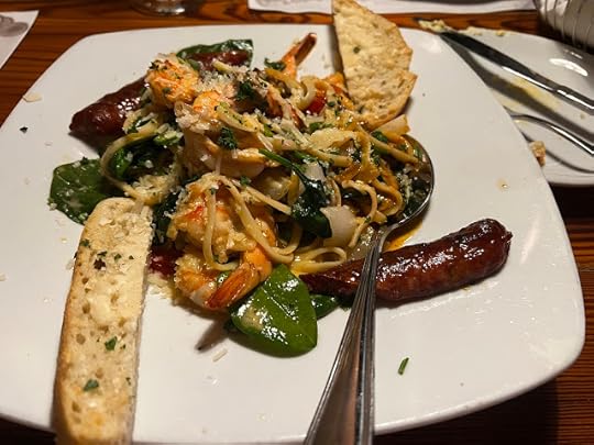 For dinner, I had a pasta dish featuring shrimp and alligator sausage (which is delicious, by the way), and I was happy they served Arnold Palmers.