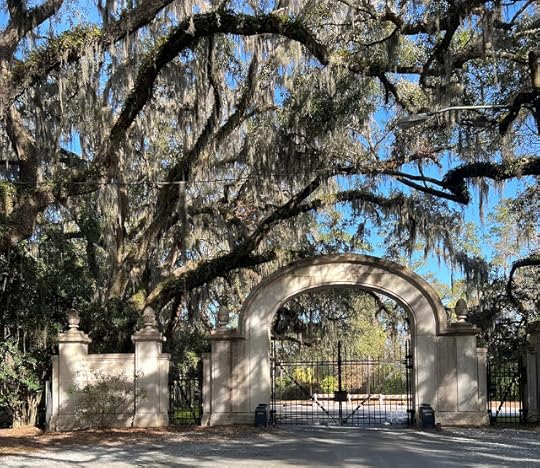 I was in college when I first visited Wormsloe, a famous historic site in Savannah. I remember this because our journalism advisor on the trip, Joe Cumming, who had served as Atlanta bureau chief of Newsweek, made us go. Joe loved history and thought we should too. And he laughed when I told him I liked the name because I imagined those worms were low. (I've apparently been taking words literally for a long, long time.) So I remembered that incident when my friend Tammy and I took a tram to the property on Saturday morning. The gate here is an iconic Savannah image.