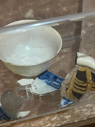 As I checked out this display in the museum, I was delighted to learn that portions of blue china have been found in the tabby.