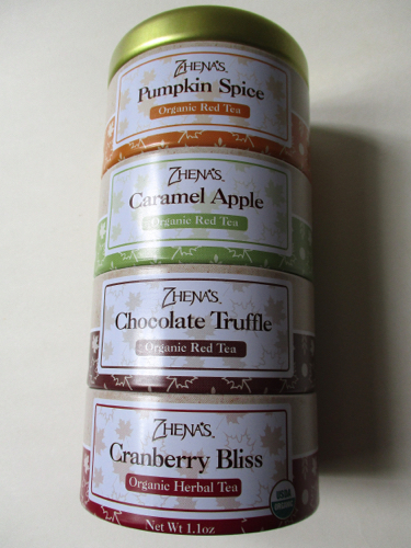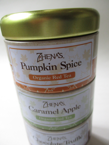 Friends, I have been looking for something fun for a fall giveaway, but so far it has eluded me. On Saturday, I was at T.J. Maxx when I came across these stackable tins of Zhena's teas, and I thought oh boy, this is it! With Pumpkin Spice, Caramel Apple, Chocolate Truffle, and Cranberry Bliss, what could be more perfect, right? Alas, I found only one set of the tins, and I selfishly decided to enjoy it for myself. On Sunday afternoon, I heated water in my electric tea kettle, plucked a tea bag from one of the tins (there were only 16 tea bags total, I discovered), and prepared to enjoy the flavors of fall.