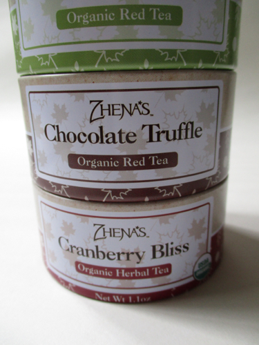 Later in the week, I tried the Chocolate Truffle. It was okay and did taste a little chocolatey. The Cranberry Bliss had a fairly fruity flavor, but compared to Zhena's teas I've enjoyed in the past, these weren't nearly as tasty. So the good news, I guess, is that I got stuck with them instead of one of you. I checked on the tin and the teas don't expire until 2019, so I'm mystified about how I ended up with such weak tea. Just an FYI in case, like me, you're at T.J. Maxx and lured by these flavors!