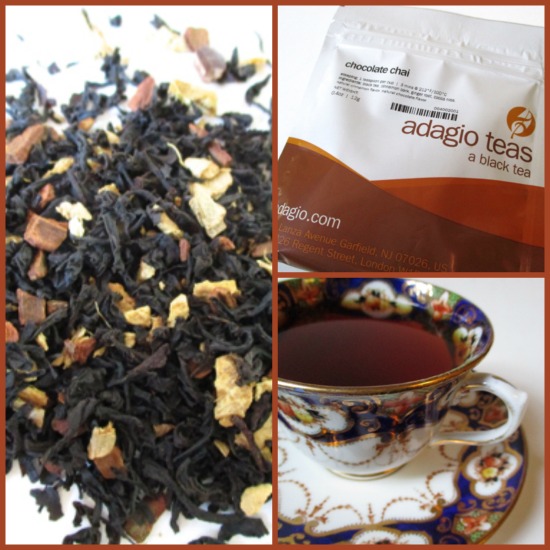I've sipped gallons of iced tea over the past few months, and when temperatures dipped just a wee bit this week, I immediately started thinking about fall teas. I remembered one I'd been waiting to try, this new Chocolate Chai sample I was fortunate to receive as a gift from Adagio Teas.