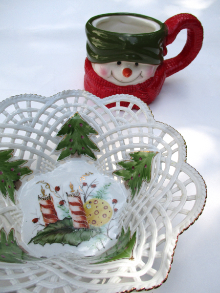 First, I spotted this adorable little lacy bowl on the Christmas aisle, but when I saw how delicate it was, I just knew it had to be plastic. Nothing that fragile could have survived on the shelf at Goodwill, could it?