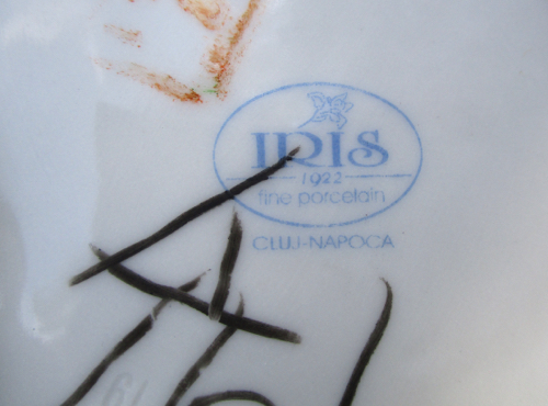 It was marked on the back "Iris 1922 Fine Porcelain Cluj-Napoca." So yes, porcelain! (And for $1.91!)