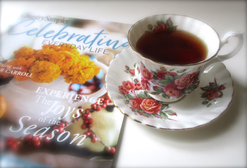 By the time this post appears online, Georgia is expected to be deluged with rain and increasing winds from Hurricane Irma, so I would appreciate prayers for our safety (and ongoing electricity!) during this storm. I do have my stovetop teakettle ready because our gas stove can still heat water in the event of a power outage. Saturday, though, was a beautiful, sunny day, and while I was out shopping, I came across a new magazine I wanted to share with you, Celebrating Everyday Life by Country Sampler. Now I don't believe I've ever purchased Country Sampler because my own decorating style is more traditional and void of any rustic touches, but this issue wasn't what I'd consider "country" at all!