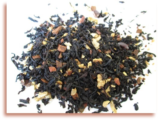 Spice teas are some of the ones I most enjoy sipping each fall, and this one has the flavors of masala chai — black tea, cardamom, ginger, cloves, and cinnamon — combined with the rich taste of chocolate. Even the loose tea has those pretty golden colors of fall that I'm starting to see on the trees.