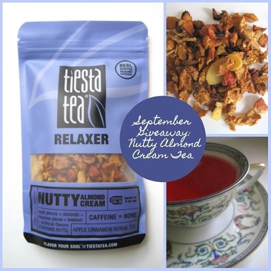 I start to get antsy if I haven't found a tea giveaway by the middle of the month, so I was delighted to come across one of my favorite new teas on sale this week and decided this would make a great fall giveaway. It's an apple cinnamon herbal tea from Tiesta Tea called Nutty Almond Cream. I say it tastes like a Krispy Kreme doughnut, but others insist it tastes like a cinnamon roll. Either is fine by me, and I hope that it sounds tempting to one of you!If you'd like to be entered, just leave an "Enter me" to this post by Tuesday, September 19, at 7 a.m. and you'll be entered to win. US and Canada only, please. (And the teacup is not included since it was a gift from a friend!) Good luck!
