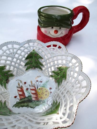 It is a mug of a snowman character from one of Jan Karon's beloved Mitford books! I came to those books late, long after everyone else had been reading them, and didn't learn about these collectibles until it was too late to buy them. Today, I will certainly scoop up any thrift store goodies I ever come across that are related to the Mitford books, which I read over and over again because they're an absolute pleasure to read and incredibly uplifting. So it was definitely a good day at Goodwill. Have you found any fun thrifted treasures lately?