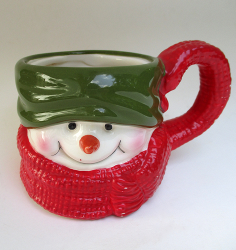 That would have made me happy enough, but then I found this! Many of you know that I collect Santa mugs and sip my tea out of them over Christmas, and I generally forego the snowman mugs (that would be a whole 'nuther collection), but something about this one caught my eye. This little fellow's expression looked so familiar, and when I turned it over, I found …