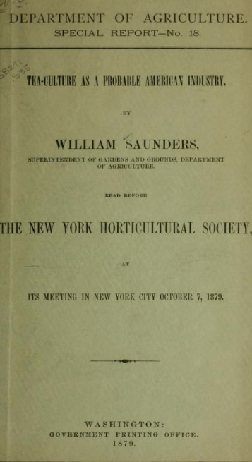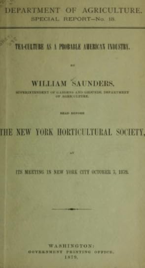 Granted, I am a tea nerd, but I was quite excited to come across a publication with some tea history I'd not read before! This is the 1879 Special Report titled "Tea-culture As A Probable American Industry" by William Saunders, Superintendent of Gardens and Grounds, Department of Agriculture. (I found this, of course, on the Library of Congress website, and you can access it here.)Here's some intriguing info I found on page 5: