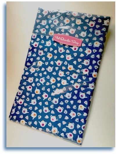 Lately I've been spending many of my free hours of the weekend stitching. Last weekend I finally finished the last block of a quilt I've been working on for years, and I've been inspired to start shopping for fabrics again so that I'll have plenty to see me through the fall and winter. When I came across this new teapot-and-teacup fabric, I wanted to be sure to share it here. I ordered it from the Fat Quarter Shop, and it's called "Royal Teapots" by Timeless Treasures. I love how they even package their fabrics in plastic, so it's protected from dust until I get a chance to use it one day!