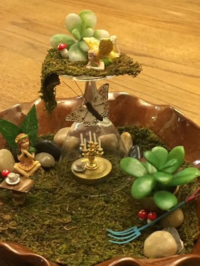 — Shop thrift stores for unusual containers for fairy gardens.— "Nature provides beautiful items for decorating them as well." White rocks and river rocks work nicely, she said.— At Michaels, the fairy items and the miniatures are on opposite sides of the store, Pam pointed out, so check out both.— Pam noted that fairy garden items sometimes get discounted. At the Fayetteville Michaels, she found some fairy garden items for 70 percent off! (And I noticed on Saturday that JoAnn had fall fairy garden items at 50 percent off already.)