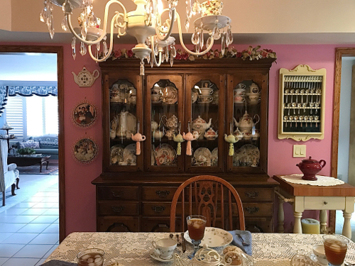 So Alex and I had been planning a trip to Wisconsin to see my stepdaughter's family, and as it got closer to time to book the flight, he asked what I thought about leaving early and going to Michigan for a couple of days, including a visit to the Grand Hotel on Mackinac Island. He also mentioned that he knew I had a dear tea blogger friend in Michigan, Phyllis, and if I wanted to arrange to meet her for lunch if she was available, he'd be good with that too. Now I'm not one to look a gift horse in the mouth, so I quickly contacted Phyllis and soon had plans to hop off that plane in Detroit and mosey on over for lunch and a visit at what I consider the most exclusive tearoom in Michigan: her home!